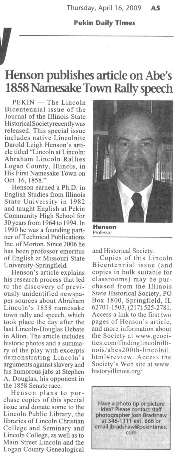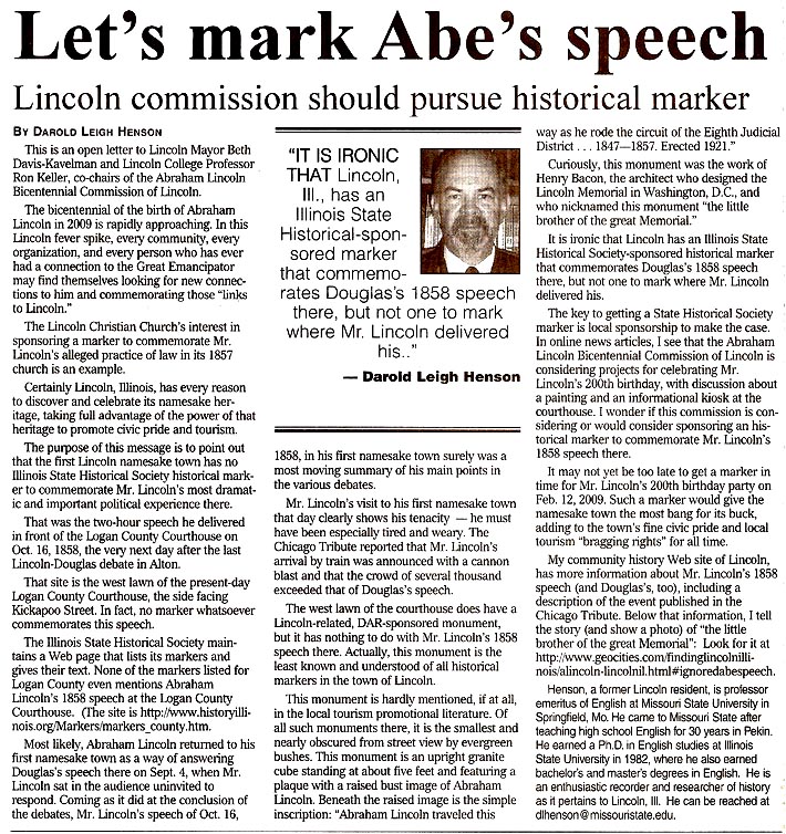 Pantagraph, October 18, 1858, p. 1. Link to full text available at